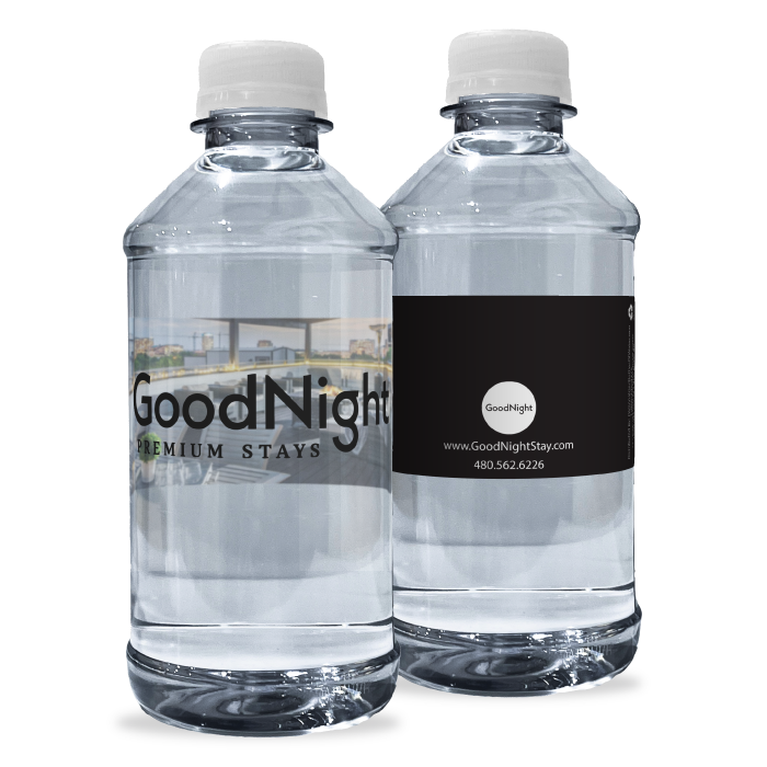 Let your guests be hydrated in style with your own personalized water! Having refreshing mountain spring water available to your guests shows them how much you care. From the moment they enter, through their stay and when they depart a cool bottle of water is available for them with your custom label!
