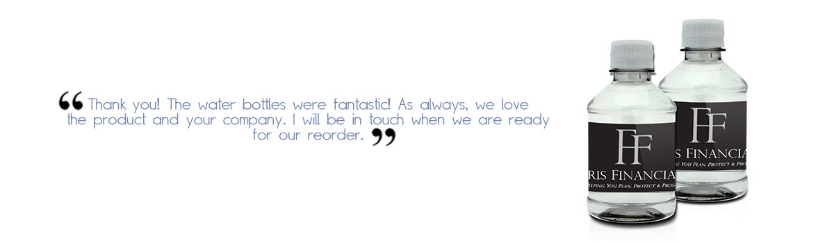 Don’t forget to have these personalized bottles of water available in your office OR your bank branch for clients! Showing genuine hospitality by offering a refleshing bottle of pure mountain spring water featuring your custom label will assure your clients that you are the bank and real estate agent for them. Not sure how you want your custom label to look? We offer complimentary design services FREE of charge and provide a virtual proof for your approval. We have helped numerous real estate agents and bank branches over the years and know what it takes to stand out. We are happy to give you ideas to improve your impact on current and potential clients.