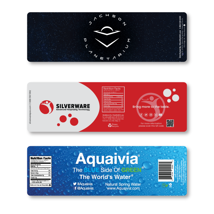 If you have your own bottled water and need only the labels for your marketing campaign, we can help! We offer our WATER-RESISTANT and 100% RECYCLABLE labels by the roll. Our custom designed labels are full color and offer a unique and eye-catching style of advertising. Contact our design team today and we will be happy to help you decide which label option best suits your custom labeled bottled water needs.
